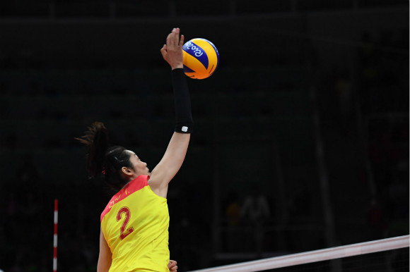 然而,这次暂停并没有唤醒博斯科维奇,她又一次在面对三人拦网时勉强扣球,又是出界。此时的塞尔维亚女排已有崩盘之势,博斯科维奇又出现了发球失误,她的重扣也被中国女排防起并抓到防反得分。整个第三局比赛,中国女排拦网和防守发挥极其出色,拦网直接得分达到6分,而防守也是多次防起了对手重扣。惠若琪的四号位调整攻帮助中国女排取得20-12的大比分领先。领先8分的中国女排稍有放松,被对手连追三分之后郎平赶紧叫暂停。然而,这次暂停也没能帮助中国女排度过接应在四号位和主攻在二号位的反轮,杨方旭的一传失误和对手的二号位后攻得分一度把比分追到17-20,只差3分。好在关键时刻二传丁霞的组织非常清晰,徐云丽的快球和朱婷的四号位强攻帮助中国女排稳住了一攻,比分来到了22-19。此时米哈伊洛维奇的发球再度帮助塞尔维亚咬上了比分,一个发球直接得分,一个破坏了中国女排的一攻,朱婷的四号位强攻被拦死之后,22-21只领先1分的中国女排再叫暂停。9号米哈伊洛维奇的发球节奏被破坏,发球失误之后,中国女排23-22领先,同时郎平用老二传魏秋月和19岁的接应龚翔宇执行两点换三点战术,朱婷的强攻打中,随后又是她的发球直接得分,帮助中国女排25-22再下一城,大比分2-1领先。