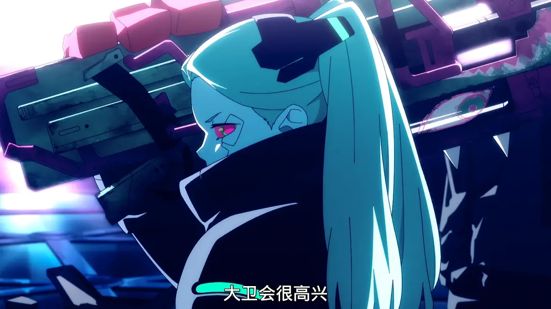 在知晓大卫结局走向的过程中观看动画,实在让人心情复杂。不过动画加入了日漫Boy meets Girl的浪漫,借登月意喻大卫与女主露西的纯净感情,这是混乱世界里唯一能令大卫保持清醒的东西,同时也让一直沉浸在血腥和暴力里的观众获得片刻宽慰。然而,该刀的地方还是果断刀下去,越是这样越令观众对大卫的死感到惋惜,果然只有BE的结局才最契合赛博朋克风格啊!