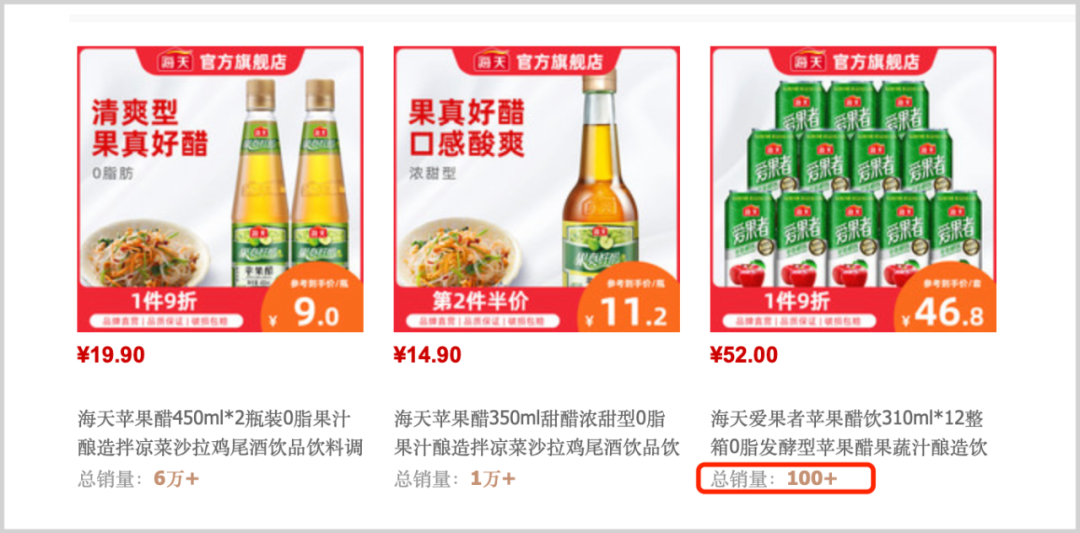 早在2016年,海天推出“张小主苹果醋爽”试图跨界进入饮料市场,2021年公司再次加码推出“爱果者”苹果醋,但截至目前在天猫官方旗舰店总销量只有100+;今年8月其又研发出“喜悦满满”胡萝卜汁,不过目前还正式未上线,只能在官方小程序买到。