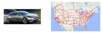 ▲Tesla Model 3 与美国境内的超级差充电站位置图
