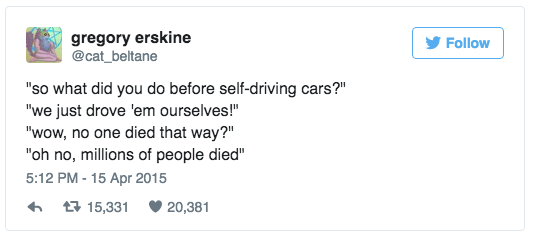 “自动驾驶汽车出现之前,你们都是怎么上路的?”