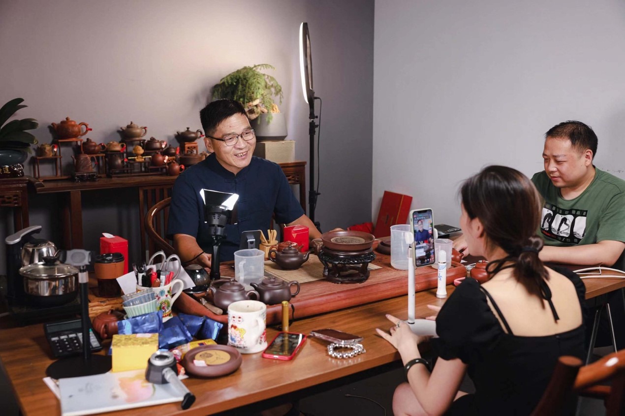 陶阳阳年纪不大,却是互联网资深玩家。2009年,他就开始在互联网上摸索经营之道,倒腾各种商品。2014年,他注意到网上缺乏紫砂壶的推广,一试水,惊喜地发现“利润是真的大”。于是,他开始转向紫砂经营,在各个平台开网店。2020年3月,陶阳阳在拼多多上了直播,成为该平台的第一家紫砂壶店。