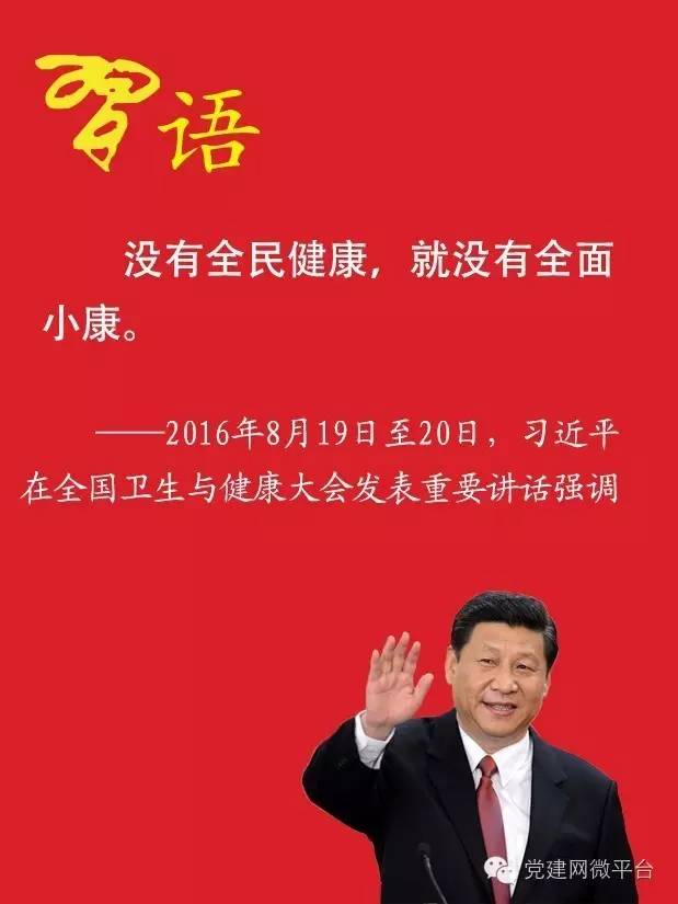 2016年8月19日至20日,在全国卫生与健康大会上,习近平再次强调:没有全民健康,就没有全面小康。