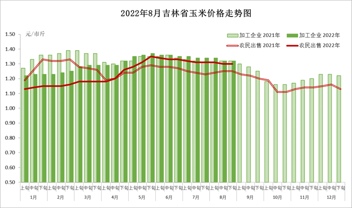 “8月,加工企业以降低库存为主,收购积极性不高,中上旬部分加工企业收购价格下调,下旬逐渐稳定。”上述分析指出,东北地区中间环节贸易商出货较慢、有一定的出货压力,需求端用粮企业采购积极性欠佳,玉米市场运行整体以偏弱为主。
