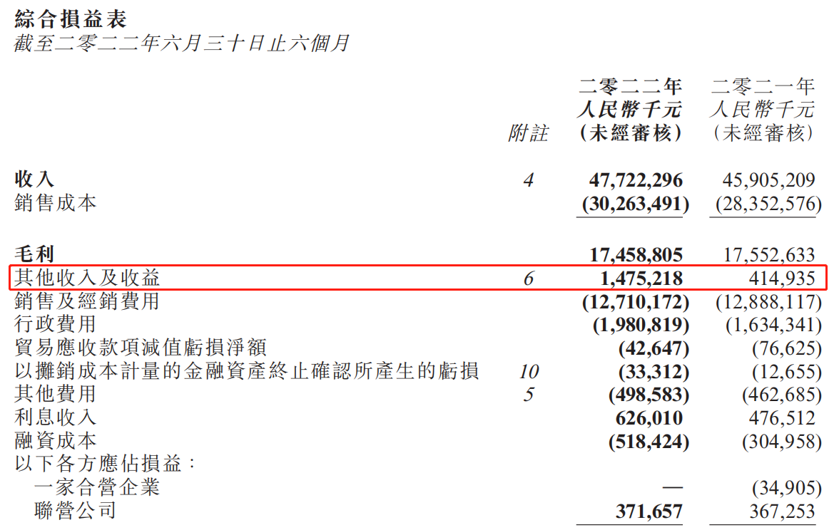 其他收入及收益比去年多出了10.6亿元,倘若刨去多出来的这部分收入,蒙牛上半年收入几乎没有增长。