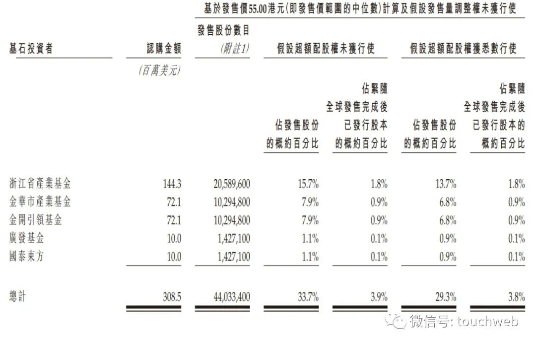 零跑科技此次上市基石投资者包括浙江省产业基金、金华市产业基金、金开引领基金、广发基金、国泰东方,上述5家机构共认购3.085亿美元。