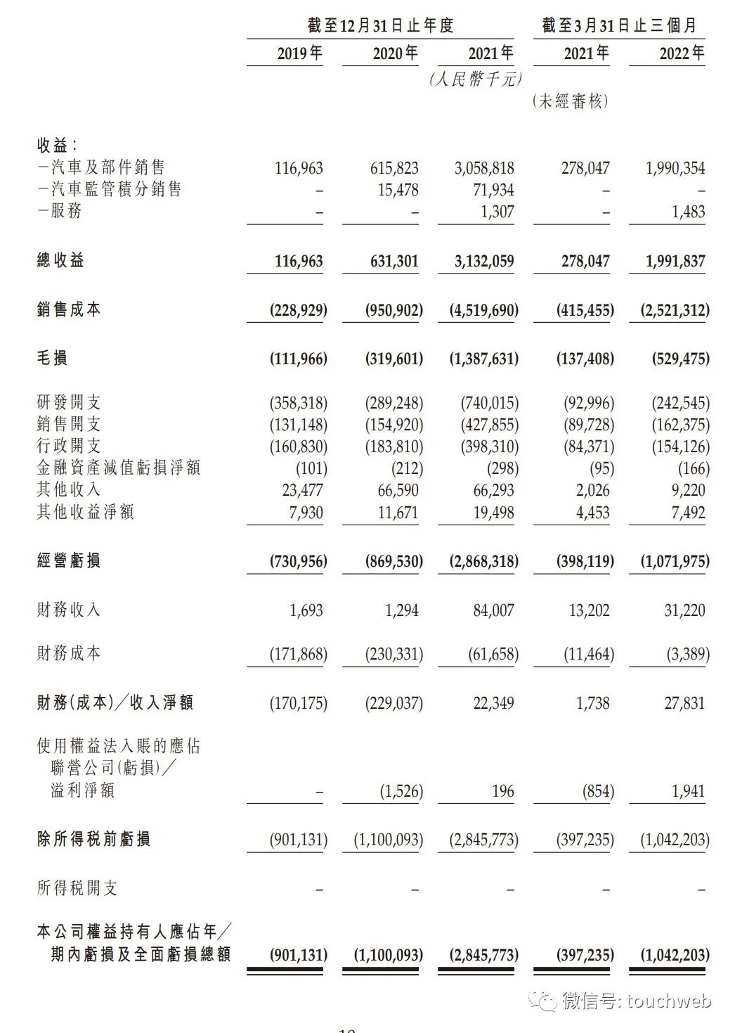 招股书显示,零跑科技2019年、2020年、2021年营收分别为1.169亿元、6.313亿元和31.32亿元。