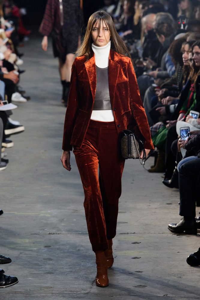 而成套的丝绒高领上衣搭配裙子,或是运动款的丝绒外套搭配中裤,强烈的运动风袭来,谁说天鹅绒只能是非常奢华具有女人味的?它一样可以走出运动气息来。