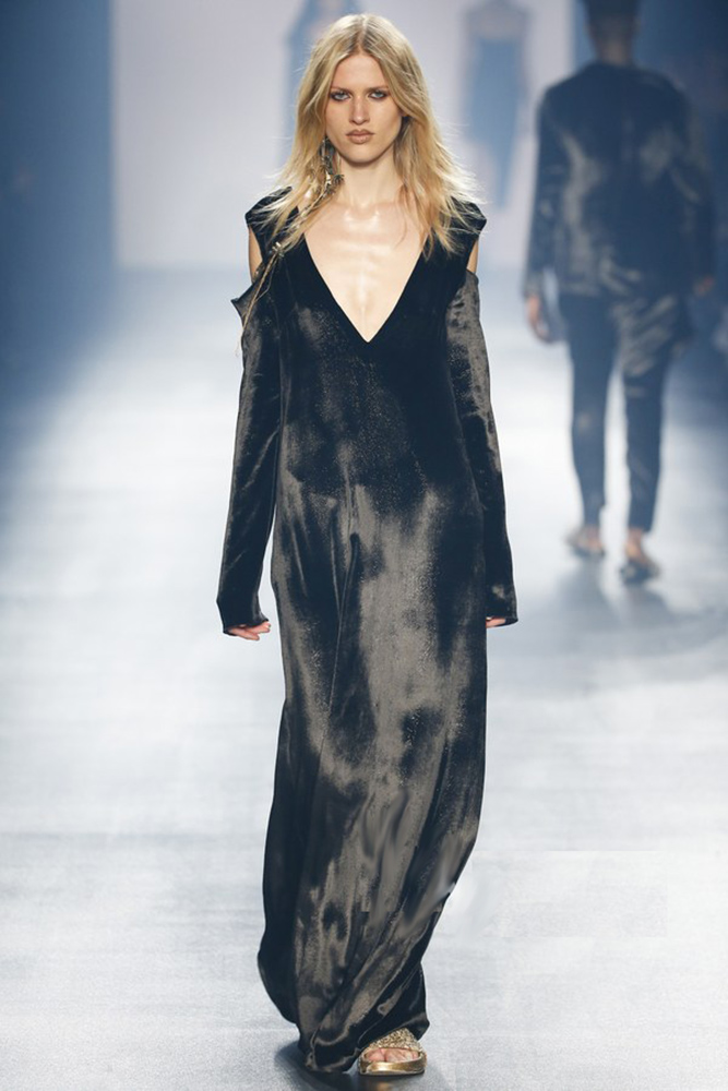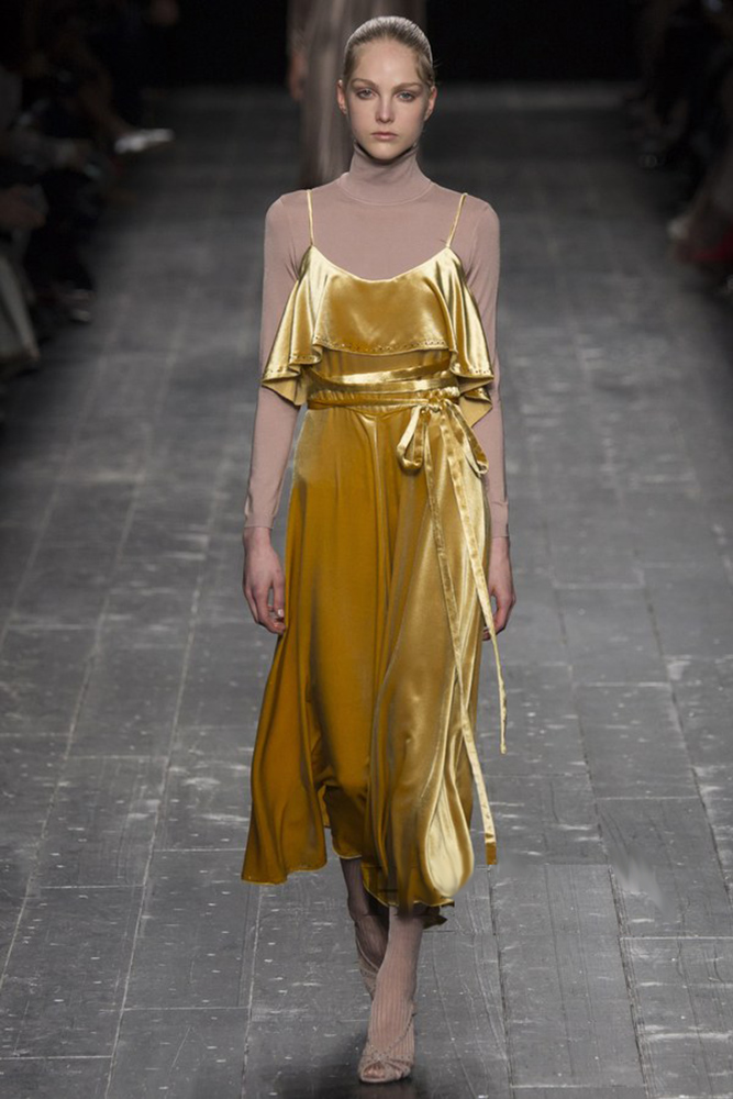 一直偏爱天鹅绒的大气与优雅,它将连衣裙带出了冷峻的尊贵感。我们不难发现,天鹅绒的连衣裙与Deep V似乎更搭,随性和慵懒感,也是秋冬季可以选择的一件式装备。