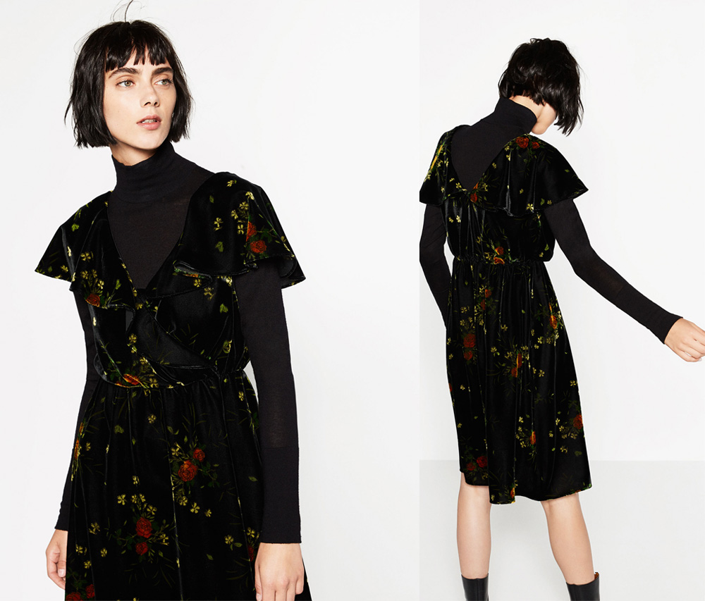 偏北方的姑娘可以选择搭配一件外套,最好是压得住丝绒的深色系,一双透气的一字带高跟鞋无懈可击。想穿得更出彩些,内搭高领轻薄的针织衫,不会过分性感,反而更多混搭的潮流味道。