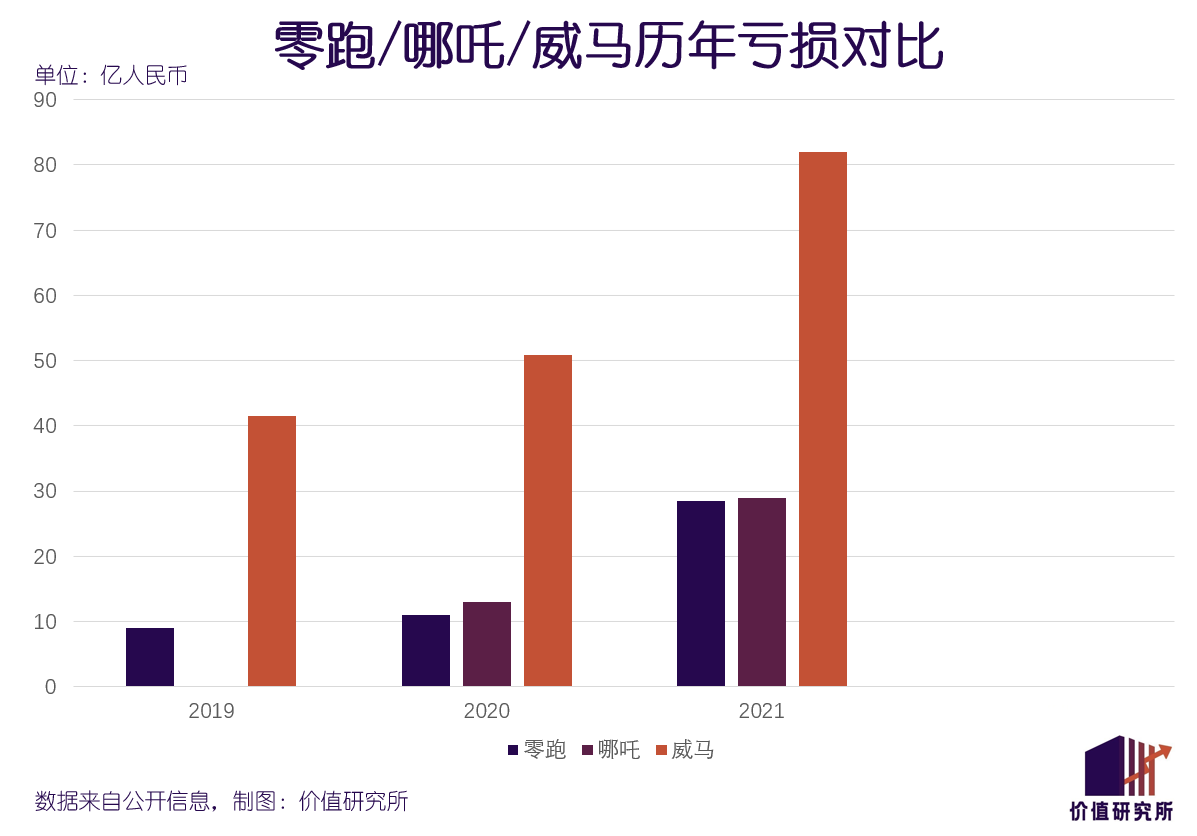 总的来说,虽然零跑、威马、哪吒品牌定位和主攻市场存在差异,但在亏损这个环节,它们的步调可是出奇一致。