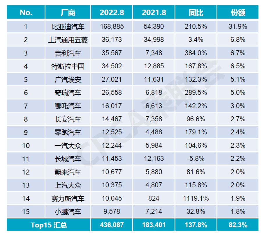 从8月的销量数据中可以看到,随着“蔚小理”掉队,有更多传统车企在新能源转型上取得成效。