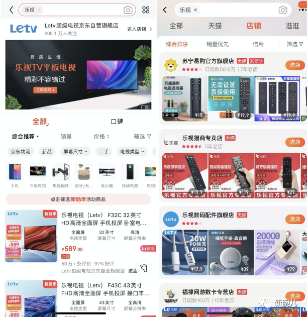 乐视属于哪一种呢?在淘宝和京东平台上搜索乐视,发现并非在淘宝开设旗舰店,京东平台渠道已经成熟。这种情况下,抖音可以理解为,承载了乐视的销售任务。