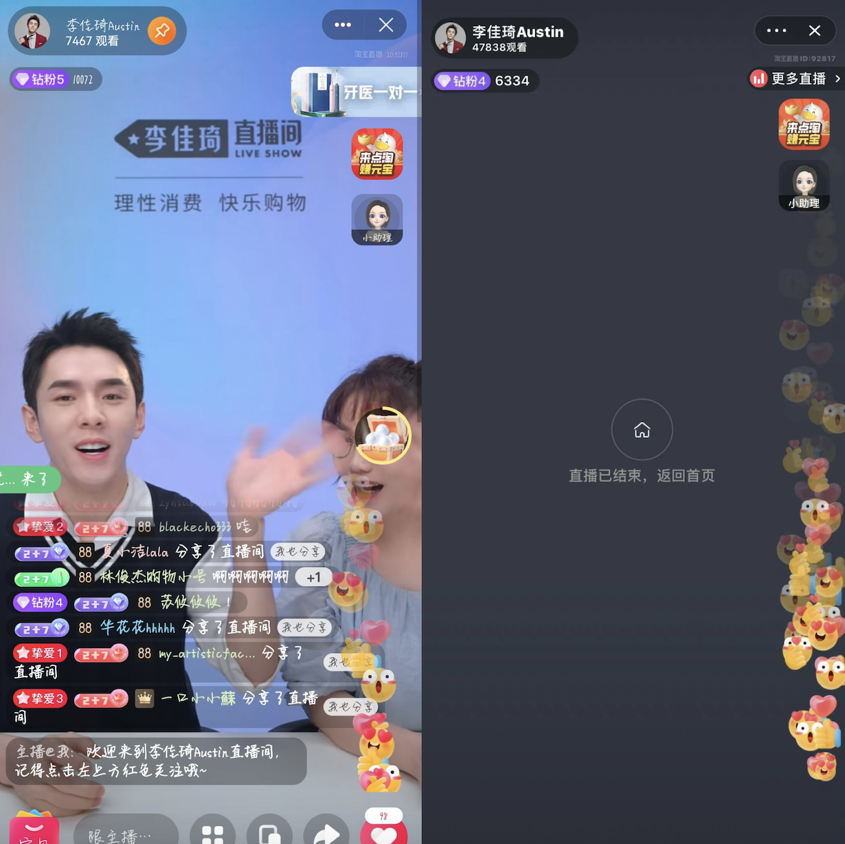 9月20日晚19点,李佳琦再次出现在淘宝直播间,没有预热微博,没有产品预告,虽低调回归,但“淘宝直播一哥”还是展现了其带货能力。短短10分钟里,直播间观看量突破15万,第17分钟直播间观看量突破100万,一个小时观看量突破2200万。
