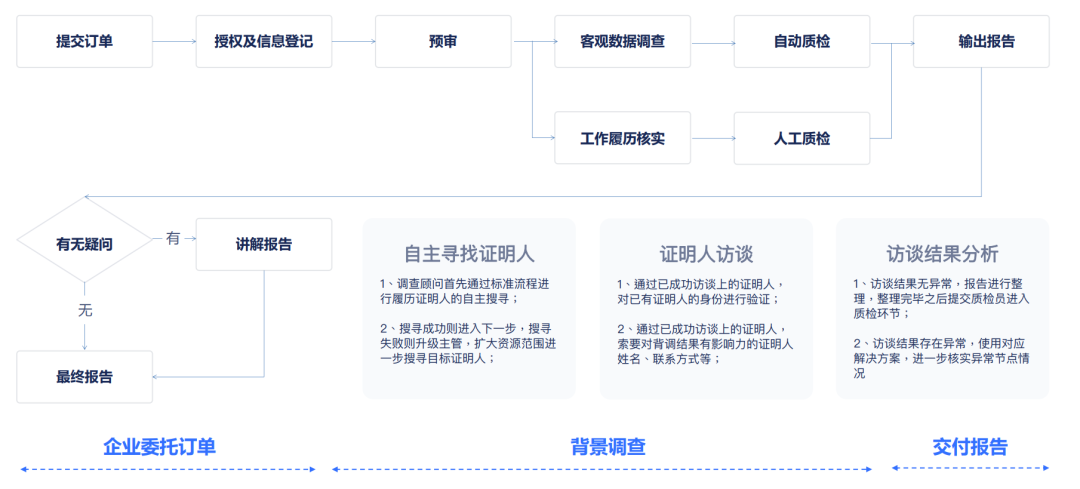 当背调员核实完细节后,还得针对沟通与访谈结果,填写背景调查报告,并定期反馈报告中存在的问题,提出合理化建议。