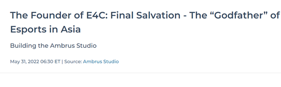 再来看看本文开头提到的Ambrus Studio。一篇新闻通稿中将其创始人Johnson Yeh称为“亚洲电竞教父”!新闻稿中将《LOL》电竞赛事在中国的蓬勃发展完全归功于Yeh,花费了不少笔墨介绍了Yeh在气候变化所做的工作,提到了《E4C》这款游戏将捐出部分收益用于应对气候变化。