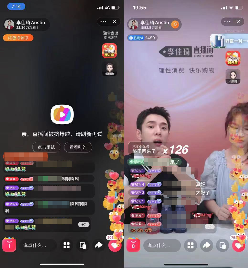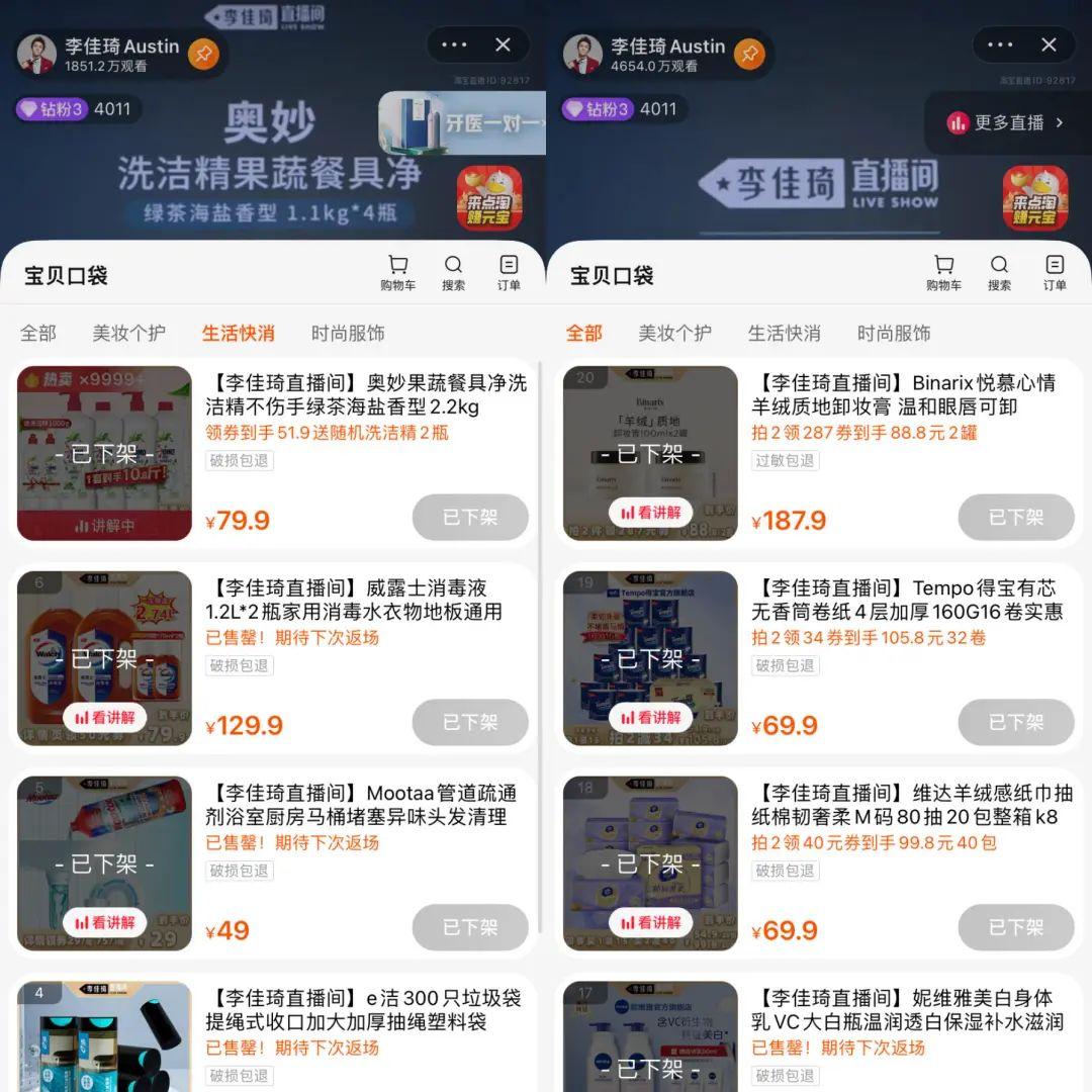 很多商品一上链接就卖断货,以往直播到凌晨1点多的李佳琦,提前4小时下播。