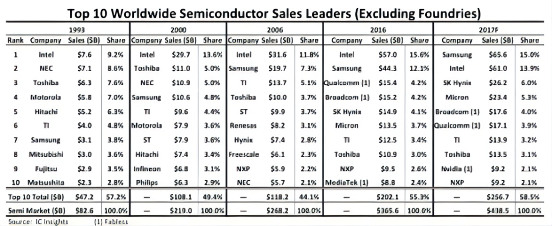 经过34年的努力,2017年三星电子终于击败英特尔,成为世界半导体业的龙头。虽然后来又被英特尔赶超,但登上「王座」本身已经极具象征意义。