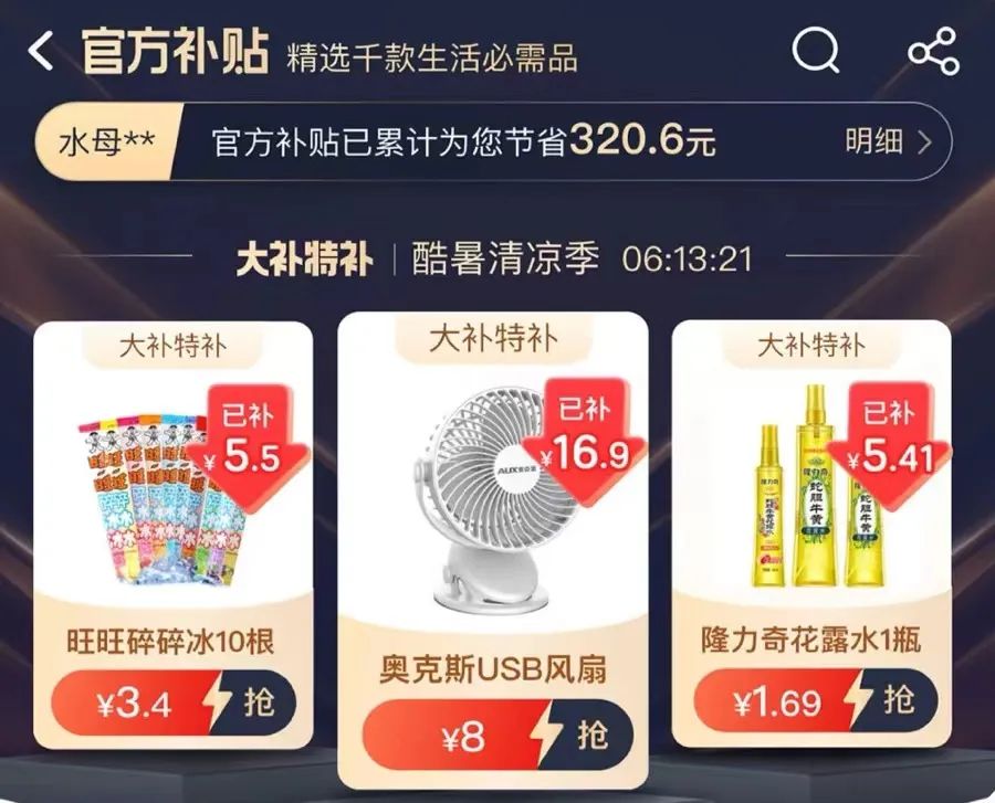 另外,还在一些权益细节上做了调整,提高用户平台打开率和购物频次,比如以前淘特补贴的红包会一次性发放,这些权益会被分成两到三天发放,以及对于一些复购比较高的商品会给予更多的曝光和流量。