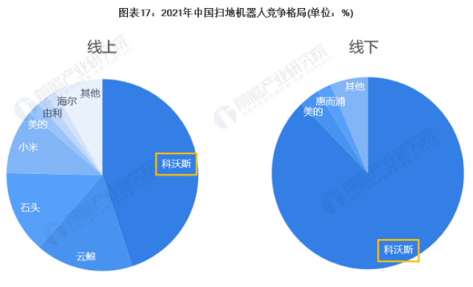 从市占率来看,作为服务机器人领域的领军品牌,科沃斯凭借着深耕家用服务机器人市场二十载的技术沉淀,以线上45%、线下88%的压倒性差距,成为毋庸置疑的行业龙头。在科沃斯之后,云鲸、石头、小米、美的在国内占比分别为16.4%、13.5%、10.9%、2.1%。