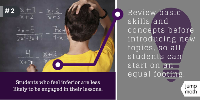 2障碍2:自卑的学生不太可能对功课完全投入。在小学的初期,孩子们会认为只有一些孩子在数学上是优秀的或是“更聪明”的。对策:在引入新的知识点之前复习基本的技巧和概念,以便所有的学生都可以在相同的基础上开始。给不太自信的学生“特殊”问题以便让他们体验成功。当学生们越感觉与其他人能力相当的时候,他们的大脑工作效率越高,从而越同样能干。