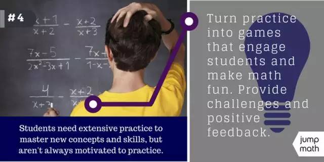 4障碍4:学生需要大量的实践来掌握新的概念和技能,但他们并不总能积极参与练习。对策:把练习变成游戏,让学生感受到学习数学的愉快。通过把挑战嵌入在练习中方法,使学生不断达到更高水平的成功,并获得即时反馈。