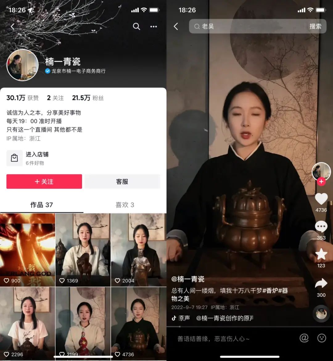 而一位行业资深人士也表示,“楠一青瓷这个账号明明是运营圈子捧起来。”要论特色,平台上也不乏有大量其他有特色的卖货直播间。