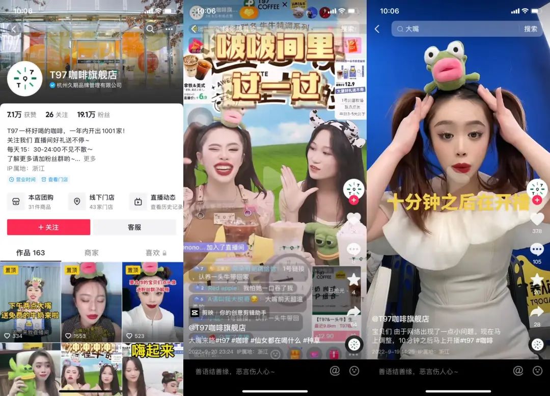 卖咖啡的“T97”直播间更是将“喊麦带货”进一步升级。