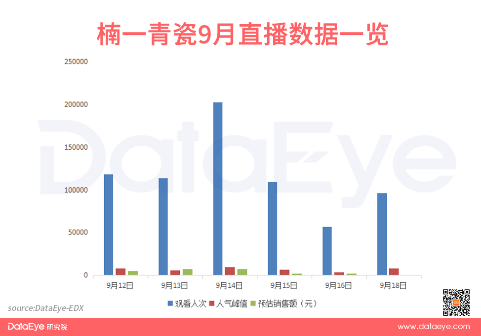 据数据显示,“楠一青瓷”最近6场的直播中,直播总销售额为2.4万元,场均销售额不足5000元。直播间近30天直播间的平均停留时长达1分46秒,较6月刚开播时的数据下降了约46.58%,或是用户对一成不变的内容产生疲态。