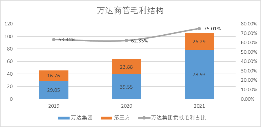 来自万达集团业务的毛利占比由63.43%增长至75.01%,万达商管的大部分业务和利润还是来自于集团母公司。