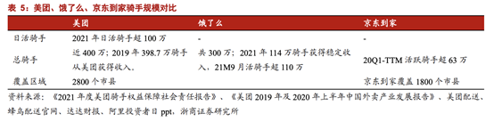 浙商证券的一份报告显示,美团和京东到家的骑手数量分别是400万和63万,同时,美团和京东到家的日活分别为8210万和80万,京东到家的业务量还十分薄弱。