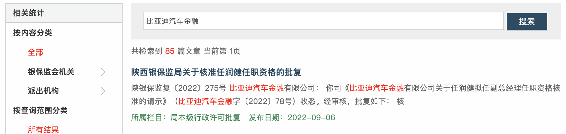 据银保监会官网,近期公开的关乎比亚迪汽车金融的批复为副总经理任润健的任职批复;最新的增资批复显示在2021年11月29日发布,当时监管同意比亚迪金融注册资本从15亿变更为40亿,暂无比亚迪金融增资至百亿的相关批复。