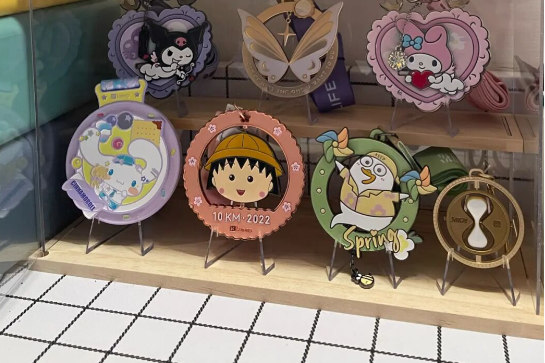 这段时间来,小易送给异地女朋友的奖牌,已经有海绵宝宝、樱桃小丸子、美乐蒂、小刘鸭、大耳狗、库洛米等。基本上,运动软件只要上新奖牌,他都要拿一块。