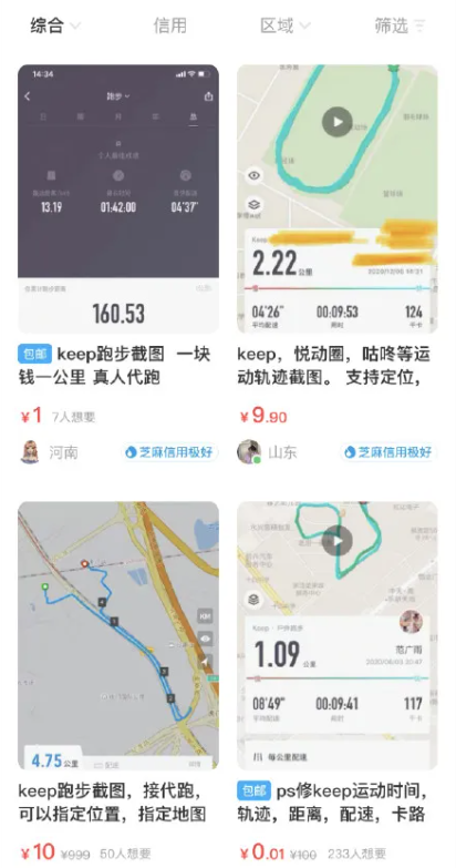 “我在KEEP、咕咚、宥马、悦跑圈、悦动圈、咪咕善跑、畅动力、乐动力等平台,都有跑单生意。”顾鑫称,他还专门雇人去打理这些事情。