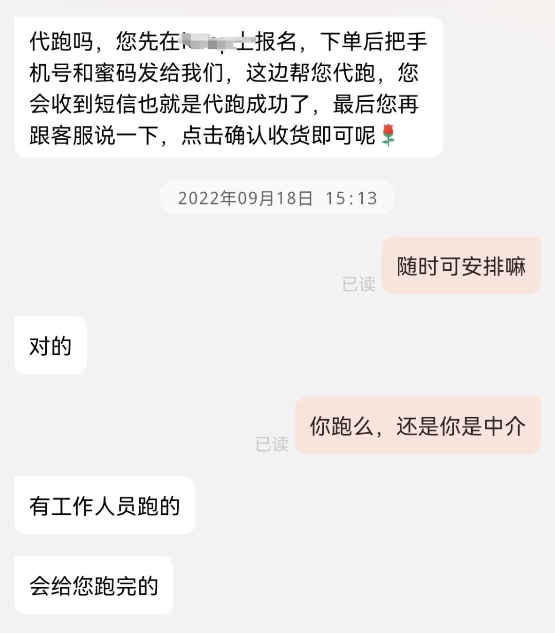 “不管什么类型的客户,他们下单后,这边一般要在48小时之内跑完。”顾鑫称,大多数代跑者是非常诚信的,偶尔也会遇到收定金不跑的人,“我看不起这种人,就骗个几块钱或十几块而已。