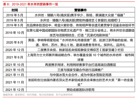 水井坊推动品牌高端化,习惯侧重于体育营销和文化营销等方面,通过打造自己的高端圈层来提升品牌地位。