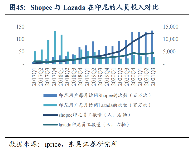 根据东吴证券数据,截至去年年末,Shopee在印尼的人员投入数量远超过Lazada,与此对应的是当地用户访问数上,Shopee实现对Lazada的快速反超,而同样的情况也在马来西亚市场发生。从各市场招聘岗位数量上,Shopee也普遍高于Lazada。而同样的策略也被Shopee带到了拉美和欧洲市场。官网信息显示,Shopee在巴西、墨西哥、哥伦比亚、智利、波兰和阿根廷仍然维系独立建站的本地化运营打法。