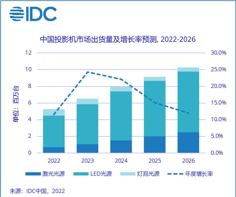 同时,IDC预计,2022年中国投影机市场销量有望超过524万台,同比增长11.5%。