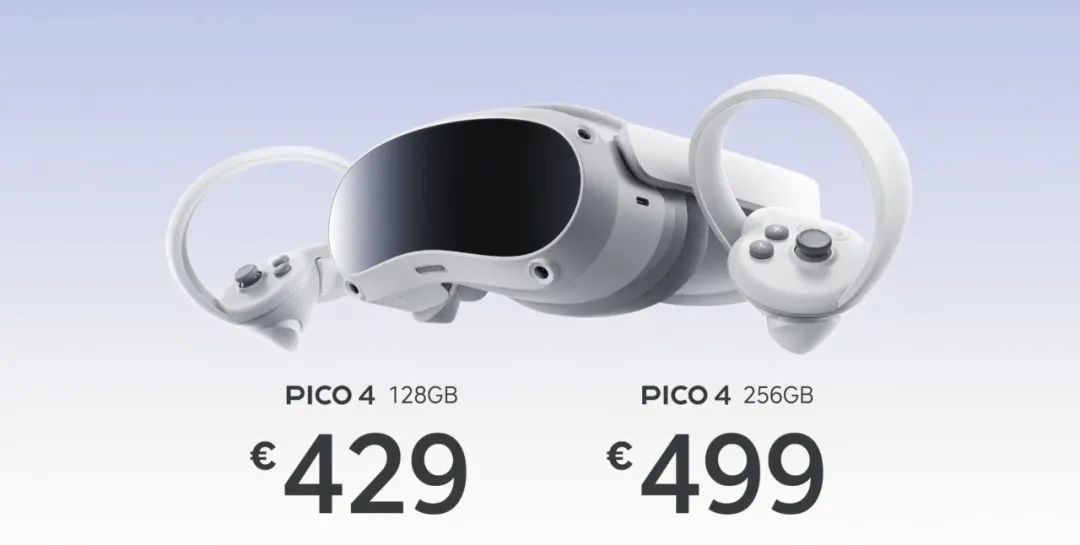 在价格上,PICO 4 126GB的海外售价为429欧元(约2982元人民币),PICO 4 256GB的海外售价为499欧元(约3469元人民币),而PICO 4 Pro的海外售价并未公布。同时,PICO还发布了PICO体感追踪器等多款VR头显配件。