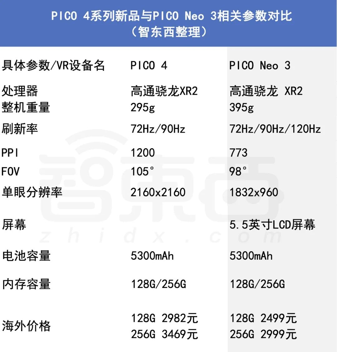 1、采用了Pancake光学方案,PICO 4比Neo3的光学清晰度提升接近86%,体积减少了43%,厚度减少了接近40%。