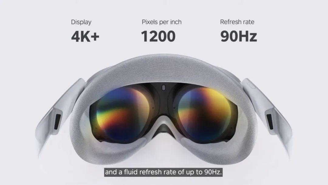 同时,通过优化,PICO 4还将减轻了Pancake方案常见的“鬼影”现象。得益于最新的光学方案,PICO 4拥有105°的视场角,支持4K+的屏幕显示、90Hz的屏幕刷新率以及1200PPI。