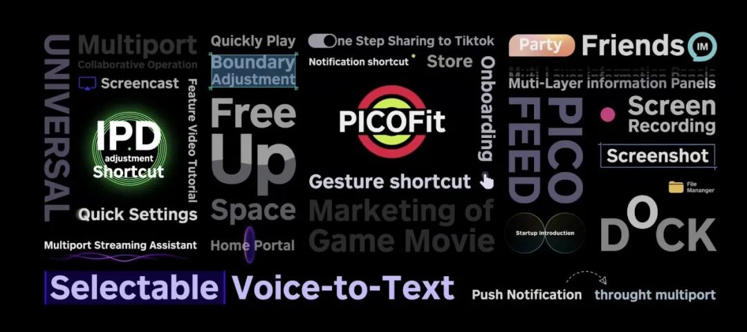 PICO OS 5.0操作系统将拥有全新的UI设计。用户可以在任何情况下唤醒任务栏,选择一些基本的功能,其设计方式有点像苹果的Home控制中心。