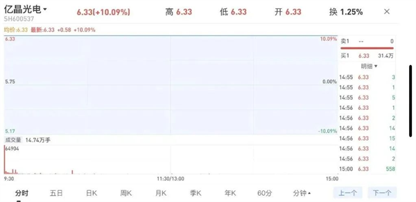 消息放出后,亿晶光电于次日(22日)直接一字涨停。