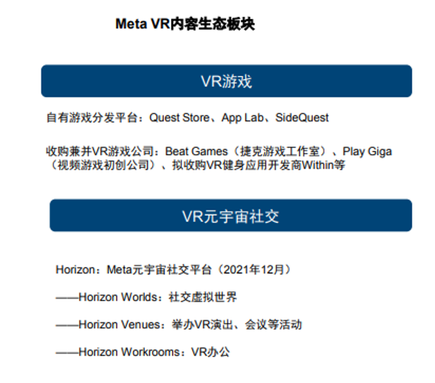 目前来看,Pico正在凭借字节生态、人才资源、营销体系全面追赶Meta。字节和Meta均通过收购方式进入VR产业、自建内容分发平台,并整合进自有生态,而Meta强于社交,字节胜于短视频,Meta有先发优势,字节有后发差异化优势。