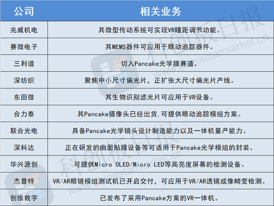 国产偏光片龙头企业三利谱曾表示,公司研究开发VR产品已有一年多时间,产品认证工作已接近尾声,同时已采购相应的生产设备,目前正在安装调试,预计下半年可以实现小批量供货。三利谱日前在投资者互动平台上表示,公司在Pancake光学膜产品领域具有相关的技术储备。
