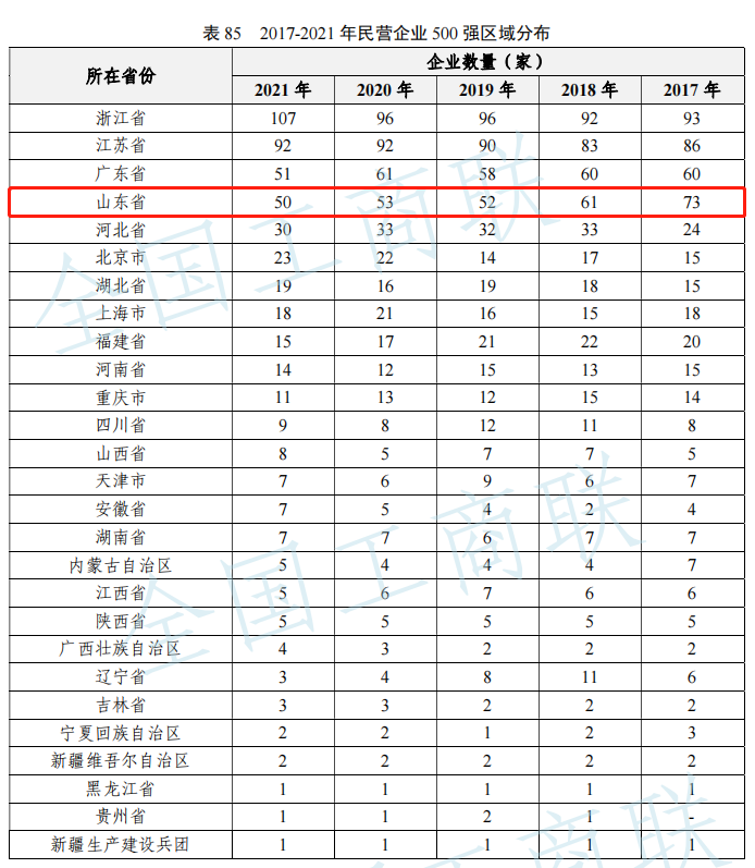 其中,山东共有50家民企入围,占全国500强比例的10%。