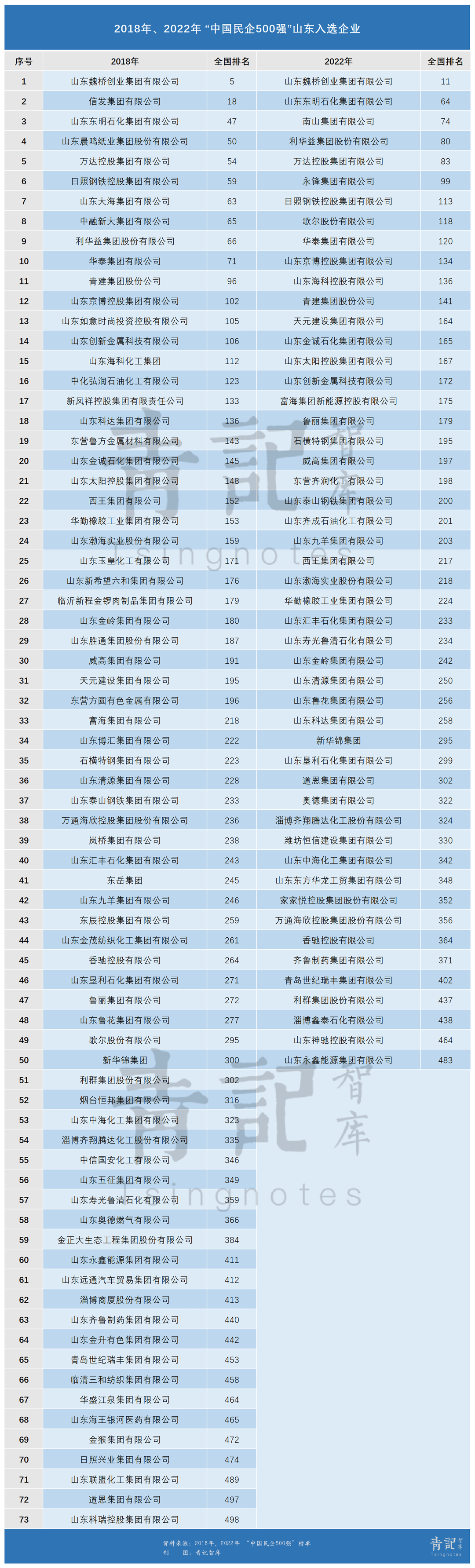 此外,鲁企榜单前十较上年新增了歌尔股份和京博控股,而去年进入前十的海尔智家今年未上榜,青建集团则在山东企业中位列第12位。