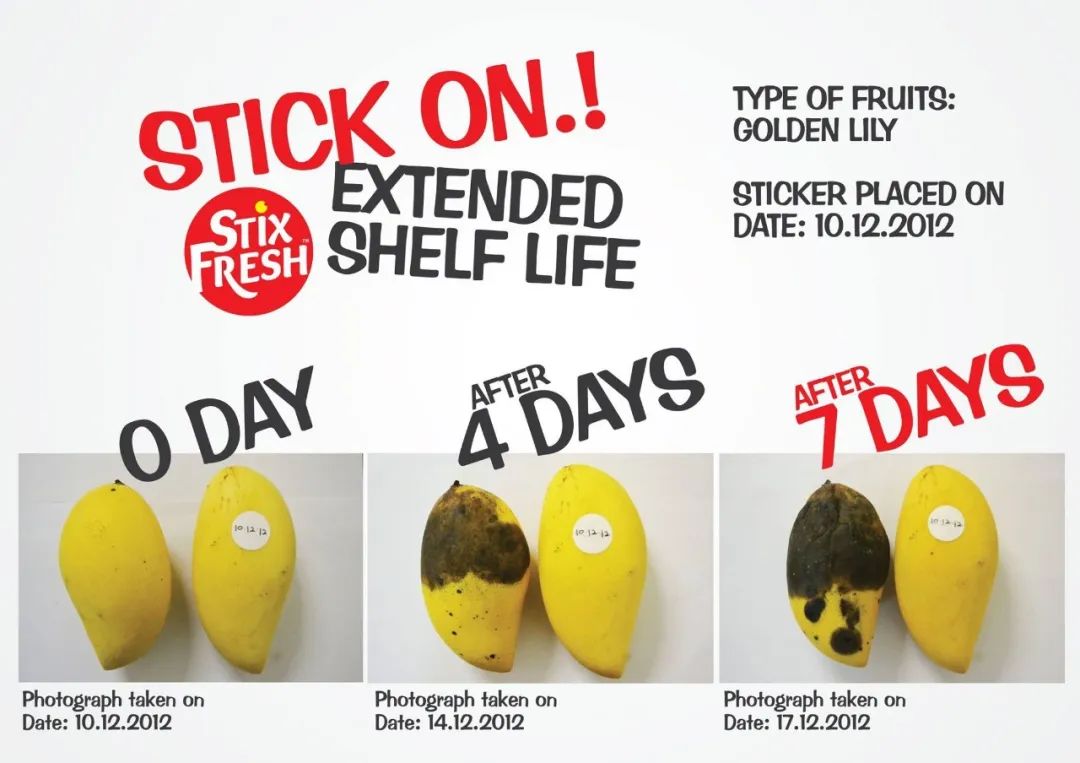 另一家名为StixFresh的企业则开发了一种贴纸,使用100%天然成分,含有植物免受病菌侵害的抗菌化合物。一旦贴纸贴在水果上,就会扩散开来形成一层化合物覆盖水果表面,减缓成熟过程。