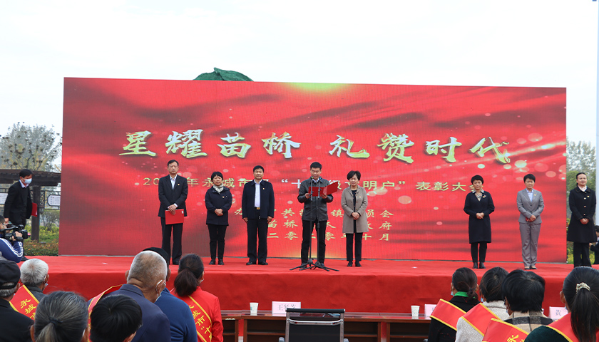 深挖典型,坚持正面宣传为主,积极开展最美苗桥人、孝善之家、五美庭院、道德模范、十星级文明户等一系列评选活动。举办第四届“最美苗桥人”颁奖典礼、第二届百姓广场舞大赛、“苗桥﹒蝶变”摄影展和“水润苗桥”杯征文大赛等,把文明风尚、家风建设、健康文化有机融入美丽家园建设,被永城市命名表彰的“十星级文明户”969户,信教群众由原来的986名下降到352名,如今的苗桥“社会主义核心价值观”、“先进文化”、“村规民约”、“道德家训”等内容丰富的文化墙处处可见,与优美宜居的生态环境相得益彰。“乡村振兴﹒魅力乡镇”苗桥宣传片在中央电视台七套展播;各级文化大家、考古专家、知名导演、演员、央媒、省媒多次到苗桥采访、采风、调研、体验生活;“最美苗桥人”王凯利、叶社教、武倩倩等分别被评为永城市“十佳好媳妇”;吴威、陈连章分别被评为“河南好人”、“商丘好人”和“新时代好乡贤”,并受到隆重表彰和广泛宣扬。