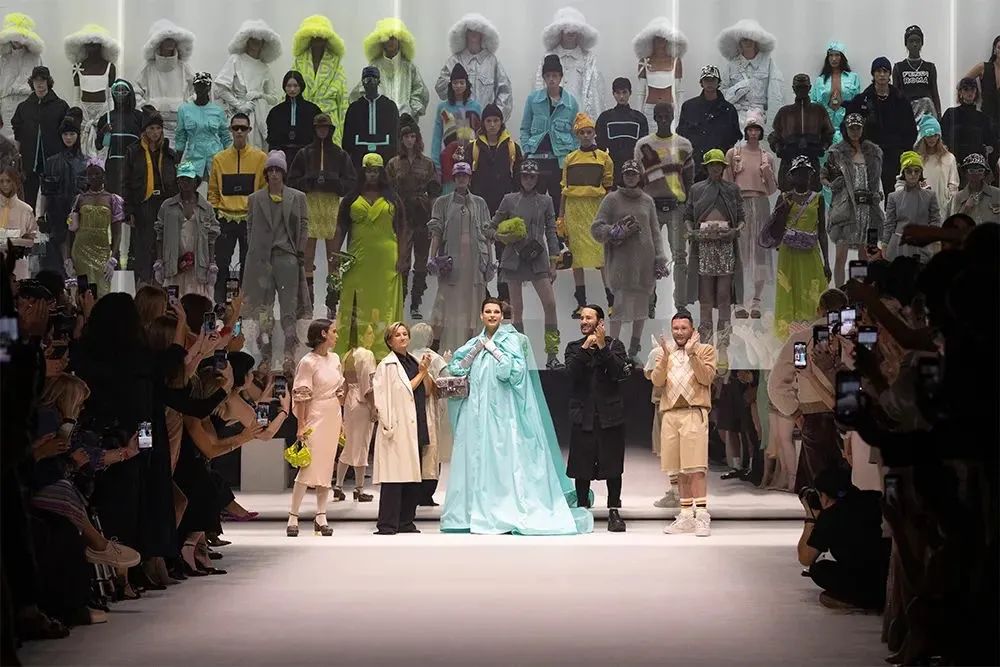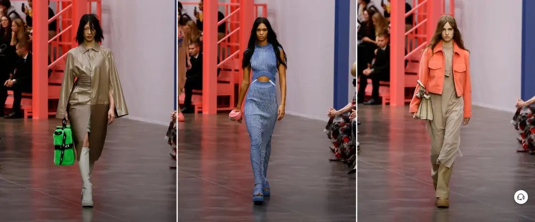 9月21日,米兰时装周的开幕大秀由 LVMH集团旗下的意大利奢侈品牌 Fendi(芬迪)领衔。在2023春夏女装大秀上,Fendi 以明亮的奇异果绿、矢车菊蓝、珊瑚红,调和了品牌一贯的灰色、米色等中性色调,Fendi 女装艺术总监 Kim Jones 说,本季希望通过色彩“为人们的认知带来新鲜感”。